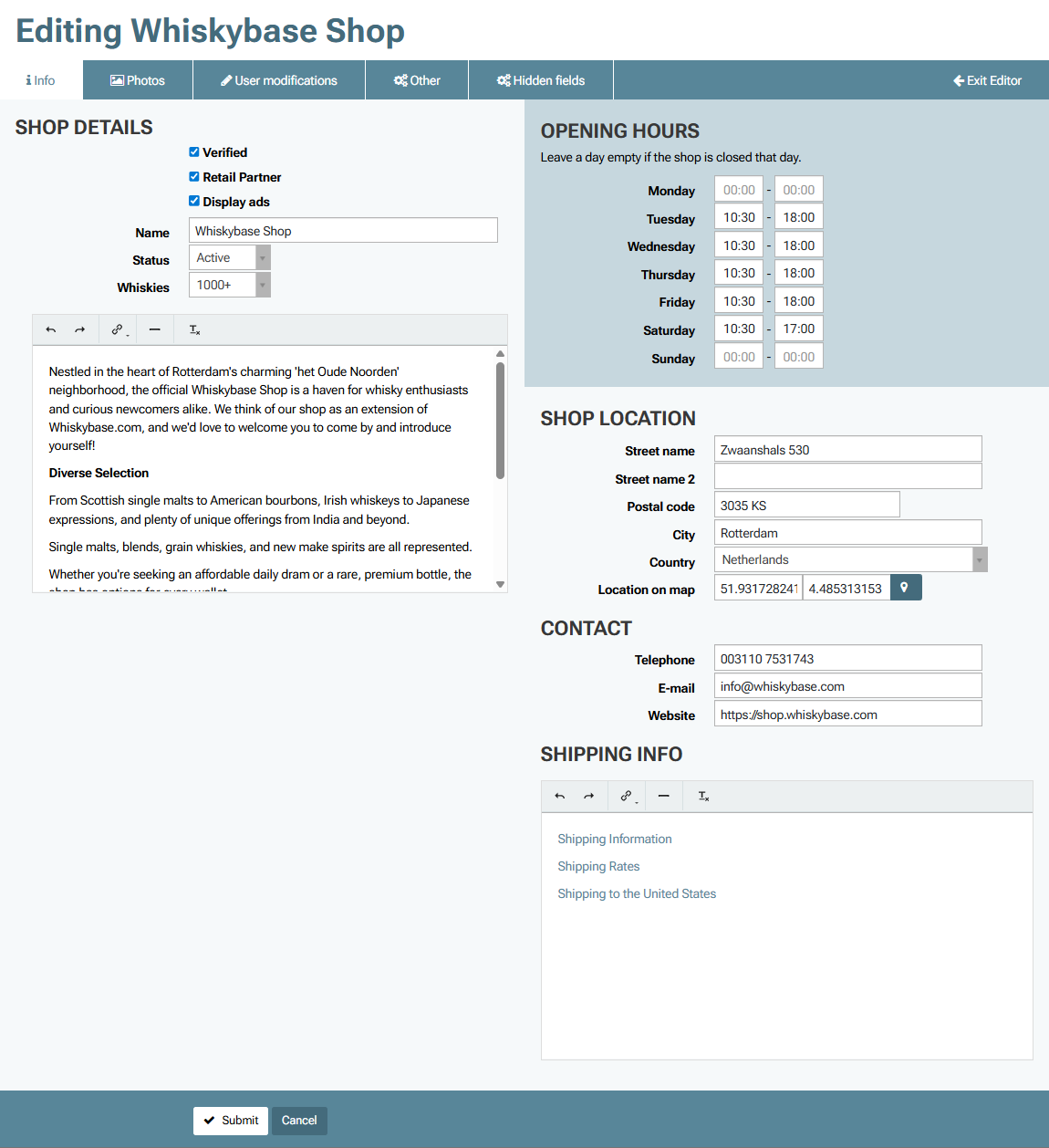 Once you click "Submit changes," these updates won't be immediate. They must be verified and approved by the Whiskybase team before going live.